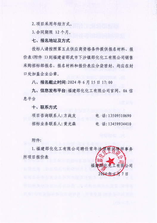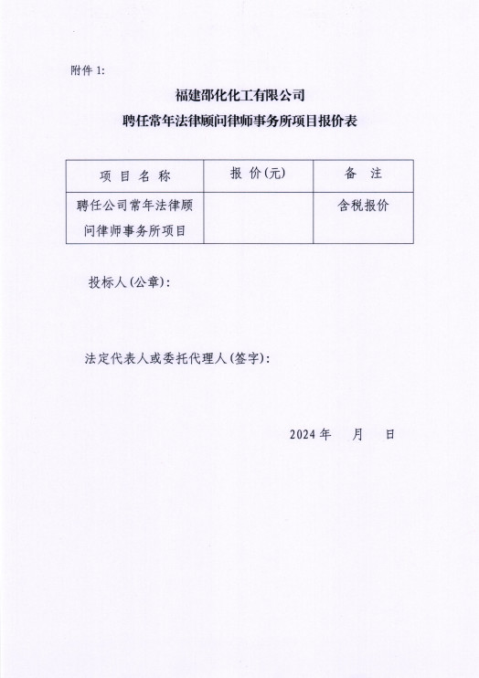福建邵化化工有限公司聘任常年法律顧問律師事務(wù)所項目詢比價公告